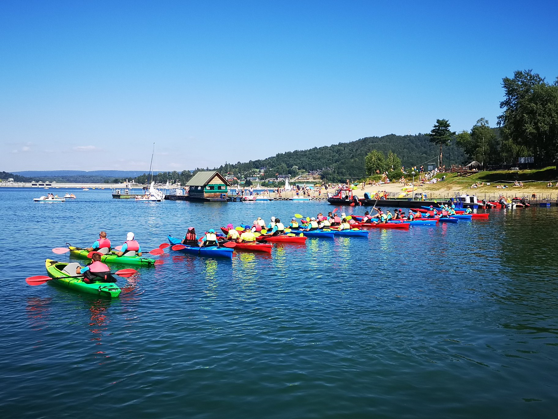 - Spływy kajakowe i pontonowe – doskonała forma integracji i bliskości z naturą. Wiosłując po krystalicznych wodach, odkryjesz malownicze zakątki jeziora i rzek.