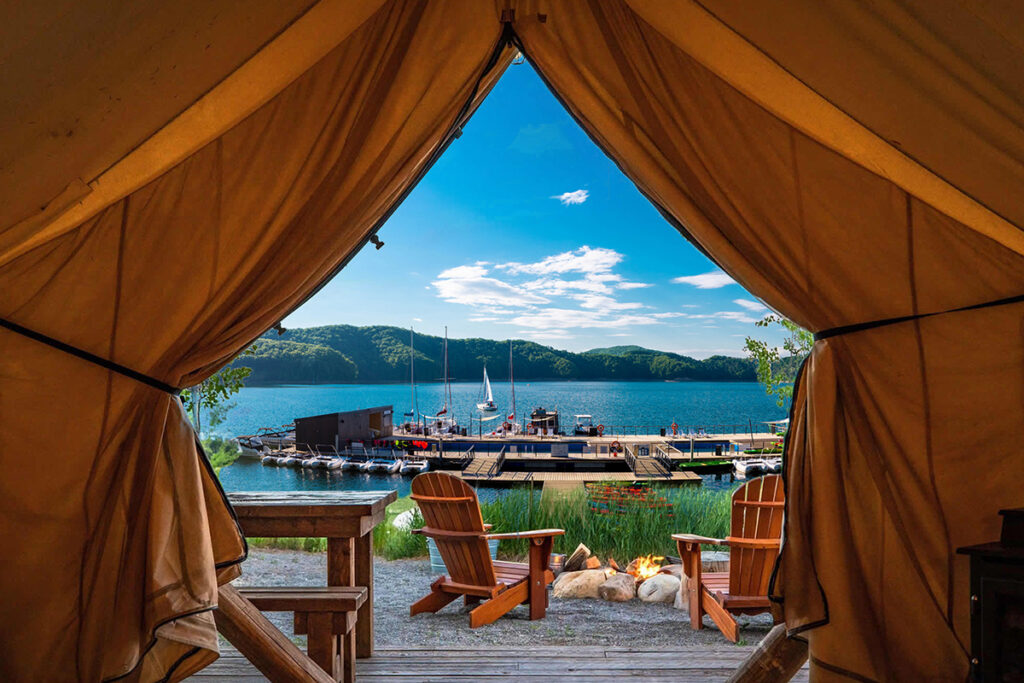 Obóz glampingowy nad Jeziorem Solińskim – zorganizuj imprezę z zakwaterowaniem w komfortowych namiotach nad Soliną. Zapewniamy zaplecze sanitarne.