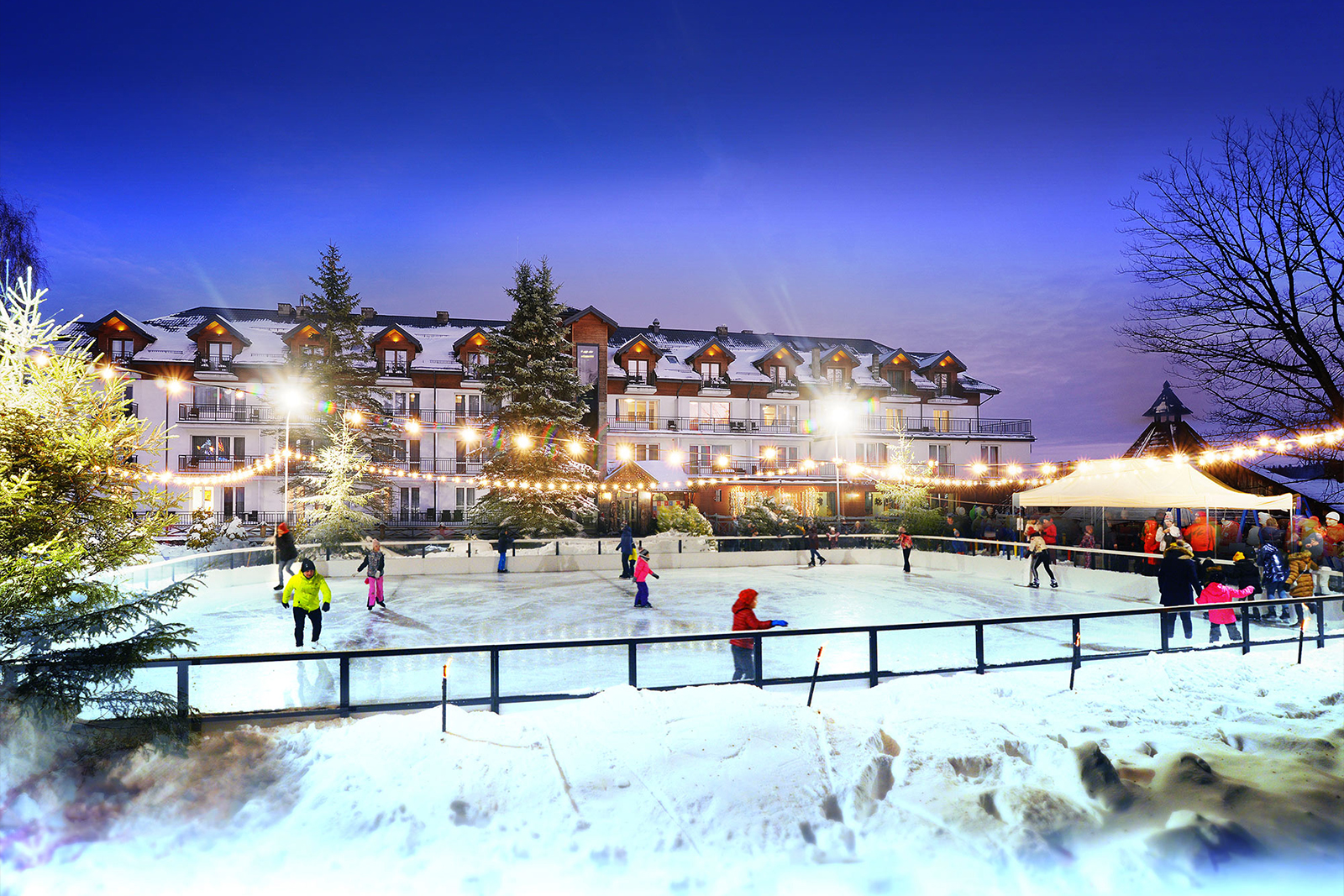 Lodowisko w Bieszczadach przy Hotelu Skalny zapewni niezapomnianą rozrywkę i przeżycia. Co więcej, jest czynne aż do godziny 21. Sprawia to, że na pewno znajdziemy chwilę w ciągu dnia, aby oddać się przyjemności jazdy.