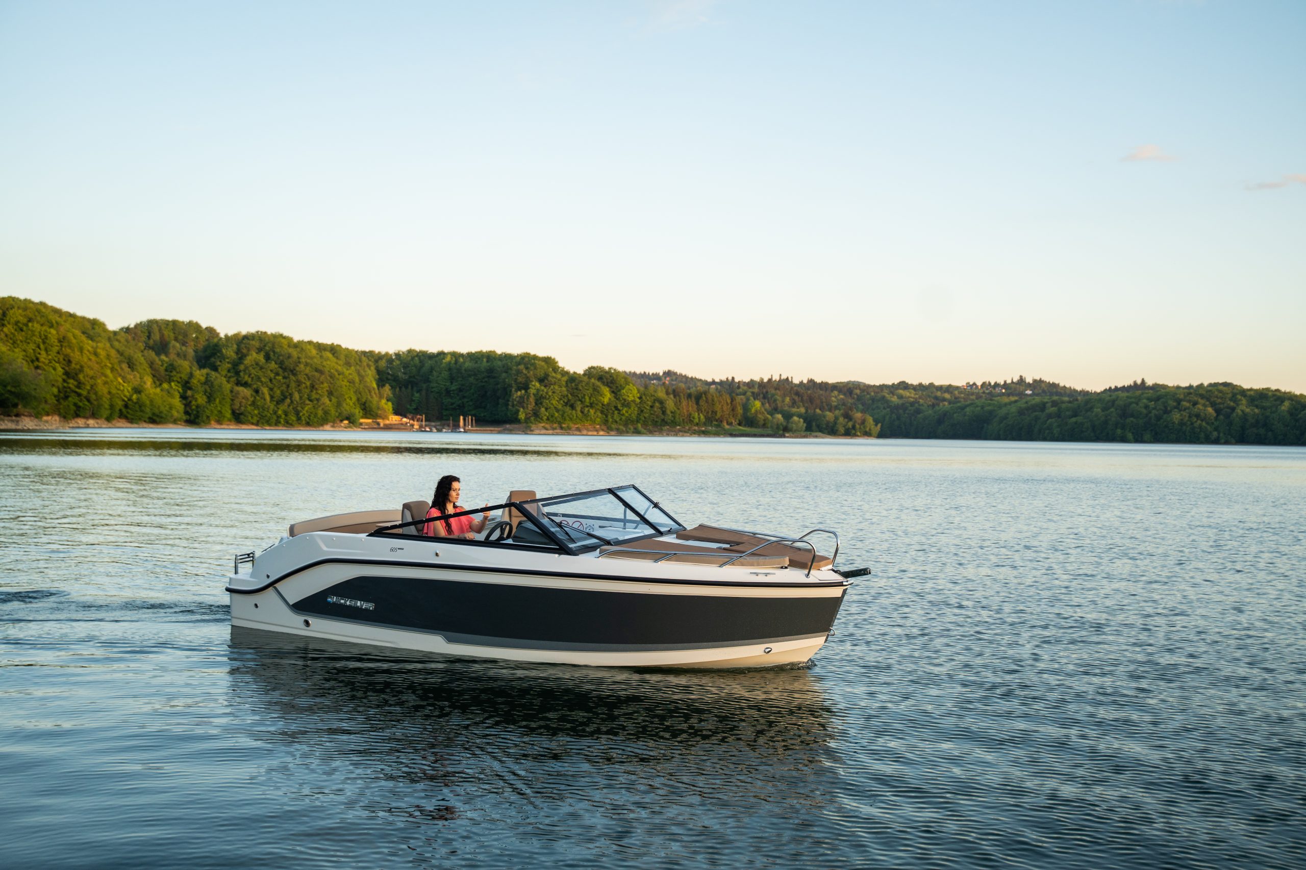 Większa łódź często oznacza większe bezpieczeństwo. Duża platforma kąpielowa z wbudowanym stopniem przy silniku umożliwia łatwe wejście do wody i powrót na pokład. Jeśli masz na pokładzie dzieci pełne energii, nie musisz się martwić – wysoki reling na dziobie i głęboki kokpit zapewniają im bezpieczne poruszanie się podczas rodzinnych rejsów.
