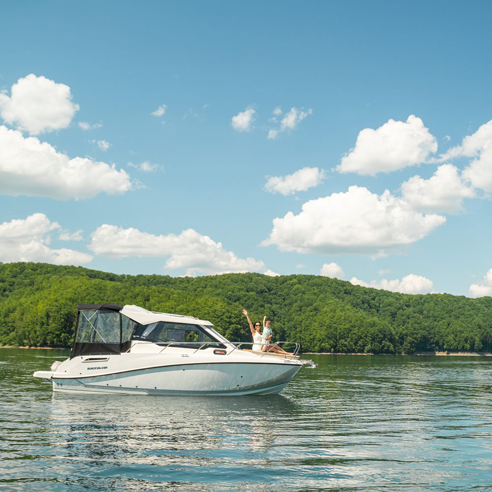 Seria Quicksilver Weekend to synonim komfortu. W pełni wyposażona kuchnia ze zlewem, kuchenką i lodówką pozwala na przygotowanie posiłków, które można zjeść w jadalni wewnętrznej lub na świeżym powietrzu w kokpicie. Na dolnym pokładzie znajduje się przestronna przednia koja dla dwóch osób oraz zabudowana toaleta morska z umywalką. Dodatkowo, opcjonalna zasłona i markiza przeciwsłoneczna zapewniają ochronę w każdych warunkach pogodowych.