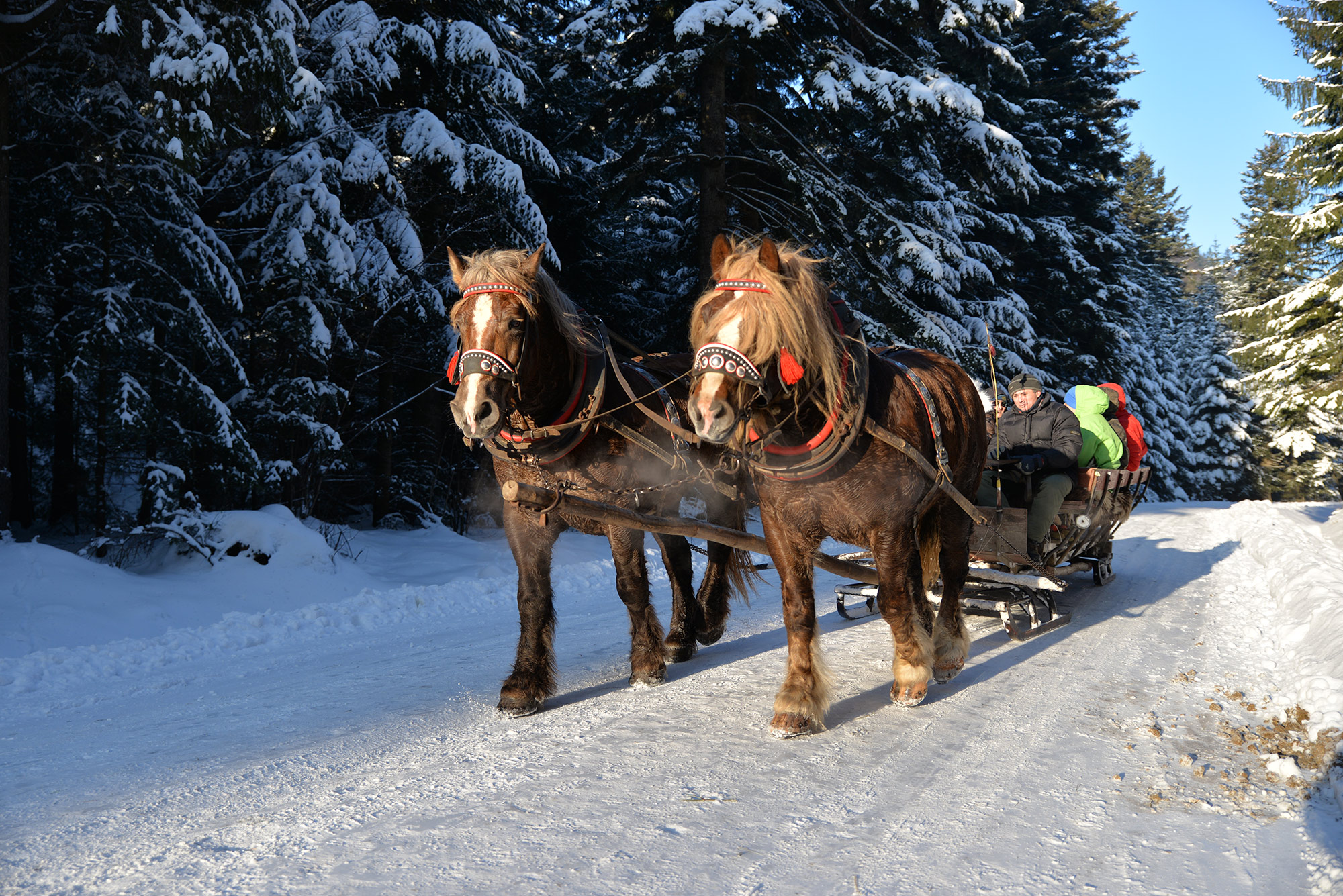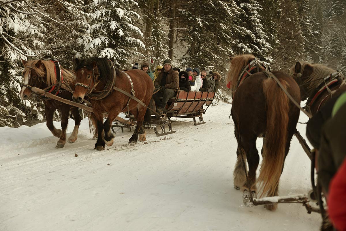 Wyrusz na spotkanie przygód, siedząc na wygodnej baraniej skórze w saniach ciągniętych przez dwa szczęśliwe konie. Z pochodniami w dłoniach i śpiewem na ustach przemierzymy ośnieżoną dolinę Rabego. Echo radosnych głosów odbijające się od wzgórz, zimowy krajobraz i blask pochodni tworzą niezapomnianą atmosferę.